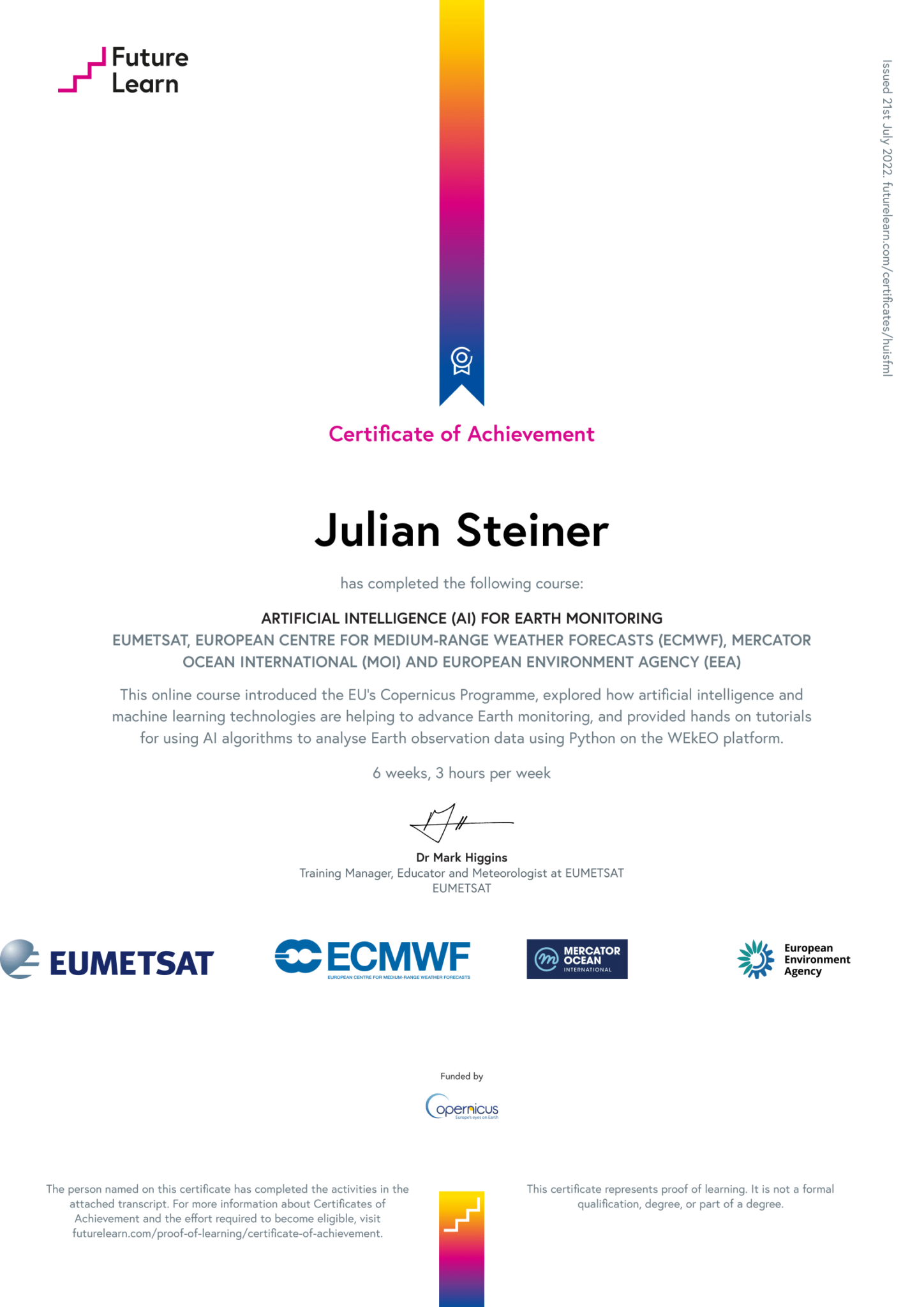 - Explore working examples of using AI and machine learning techniques with Copernicus data and services for each of the 4 themed weeks; Land, Ocean, Atmosphere and Climate.
